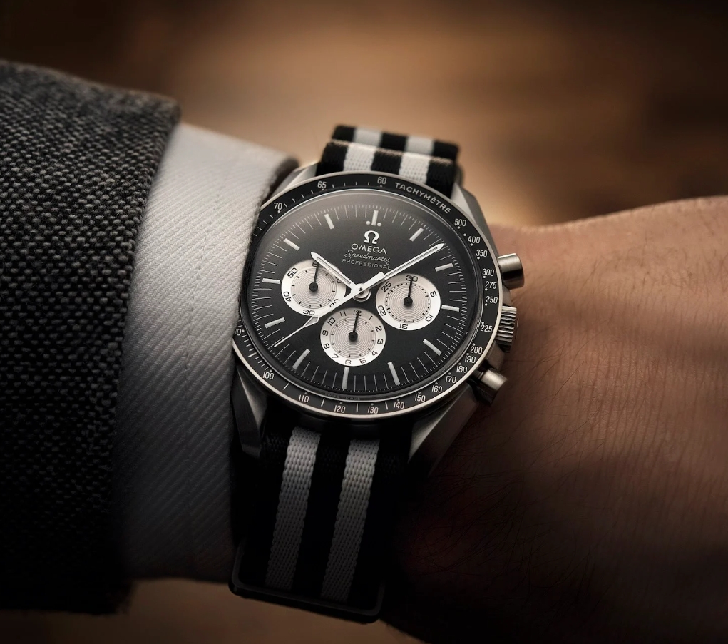 As for reverse panda dials on the Moonwatch Professional (there have been quite a few of these dials on other Speedmaster models), there’s only one that comes to mind, and it’s the first Speedy Tuesday edition launched by our friends of Fratello in 2017 (ref. 311.32.42.30.01.001). But there is more to come in the collection now, with two new editions of the Speedmaster Moonwatch, in steel or in Moonshine Gold, with black and white reverse panda dials. And if you have the feeling that you’ve already seen it somewhere, it’s because the 1:1 fake Omega watches (in its gold version) were discreetly teased by the brand at the 2025 Met Gala, worn by actor Colman Domingo.
