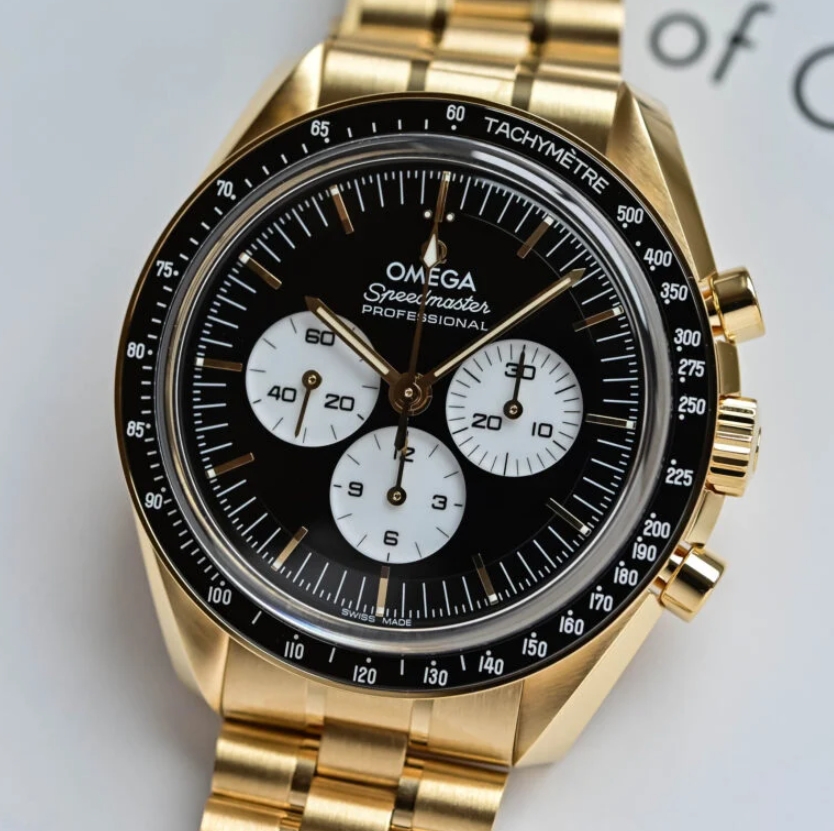 The modern Omega Speedmaster Moonwatch Professional, the direct descendant of the Swiss replica Omega watches that accompanied Apollo 11 crew members to the Moon, doesn’t need much introduction anymore. It is, undeniably, one of the most iconic and storied timepieces in existence. But there is more than one Moonwatch. Besides the classic steel version with a closed back and Hesalite crystal, Omega offers over 20 references of this emblematic chronograph, in steel with a white dial, in bi-material or in various gold alloys. Now in 2026, and following the brand’s tradition of releasing a new Speedmaster on one of the first Tuesdays of the year, replica Omega watches for sale add two new editions to its Moonwatch Professional collection, in steel or Moonshine Gold, equipped with black and white reverse panda-style dials.