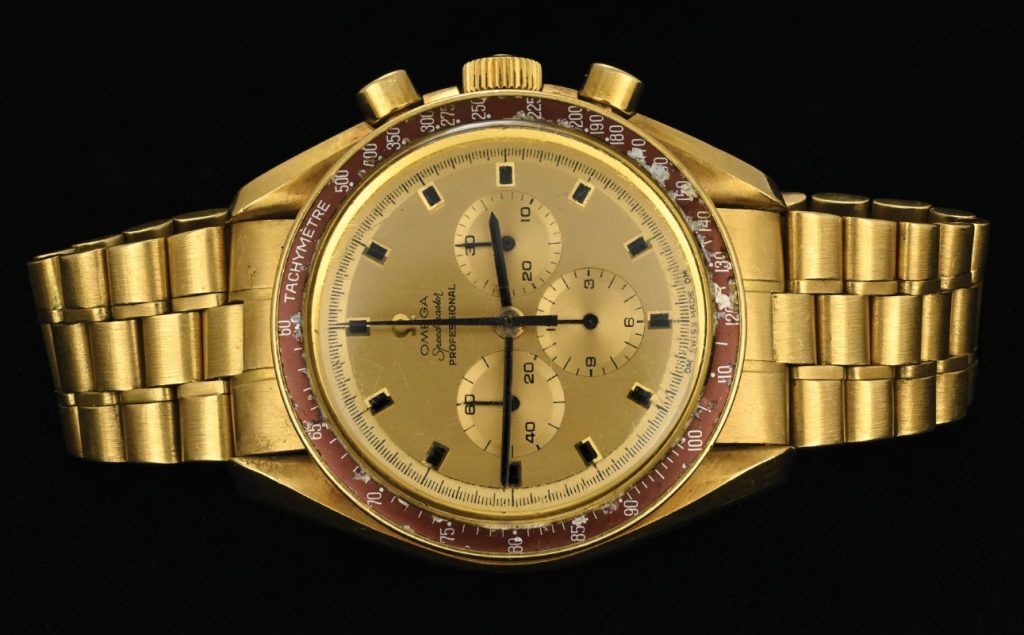 Offered at the gala honoring NASA’s Apollo 11 crew, this rare Swiss clone Omega Speedmaster watches were issued as “No. 17” and engraved with Armstrong’s name and mission history. Unlike the standard steel Speedmaster Professional, this commemorative model features an 18K gold case, a burgundy bezel with the famous’ dot over ninety,’ and a solid gold dial with black onyx markers. Armstrong was known to wear the top fake Omega Speedmaster watches on special occasions, and it remains in remarkably original condition. The auction will take place live at the Royal Sonesta in Cambridge, Massachusetts, with bidding also available via phone.