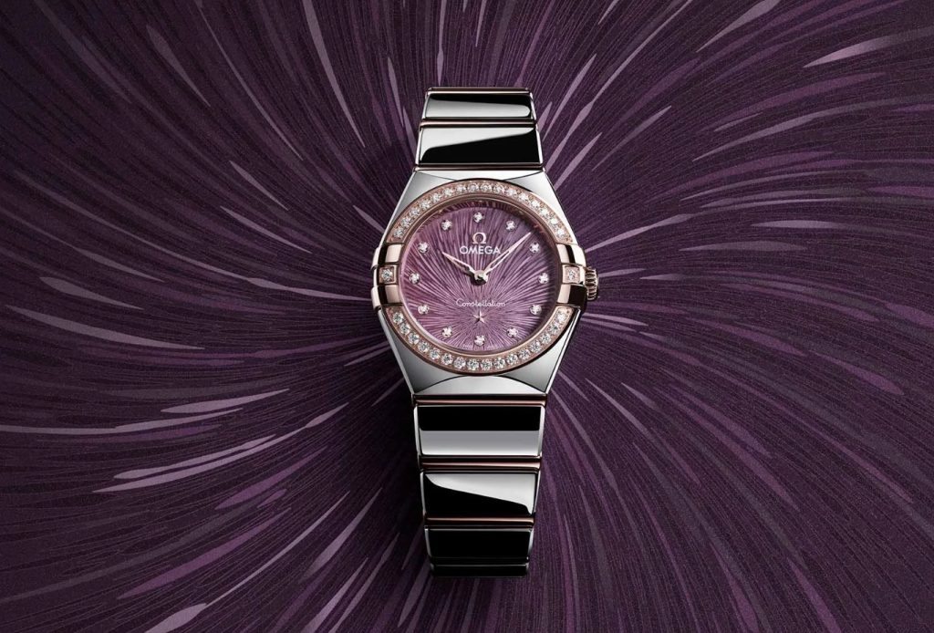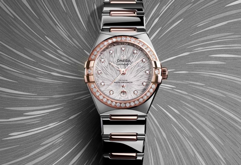 There are options in stainless steel, Moonshine Gold, Sedna Gold, and a mix of both, but the real stars of the show are the dials. Spiralling out of the Constellation star above 6 o’clock, a roughly gouged sunburst texture creates an explosion of colour. From aubergine to sage green, including various metallic golds and silvers, different tones are explored in the steep valleys and peaks of the dial’s depth. Every reference’s bezel and dial have been set with substantial diamonds too, increasing the sparkling dynamics as your AAA Omega replica watches move around. Top Omega clone watches’ tagline for this new batch of releases has been ‘Time Telling Jewellery,’ and they certainly live up to that.
