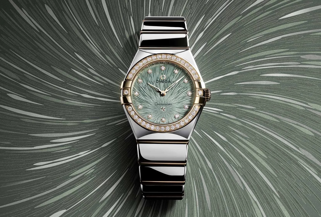 There are options in stainless steel, Moonshine Gold, Sedna Gold, and a mix of both, but the real stars of the show are the dials. Spiralling out of the Constellation star above 6 o’clock, a roughly gouged sunburst texture creates an explosion of colour. From aubergine to sage green, including various metallic golds and silvers, different tones are explored in the steep valleys and peaks of the dial’s depth. Every reference’s bezel and dial have been set with substantial diamonds too, increasing the sparkling dynamics as your AAA Omega replica watches move around. Top Omega clone watches’ tagline for this new batch of releases has been ‘Time Telling Jewellery,’ and they certainly live up to that.